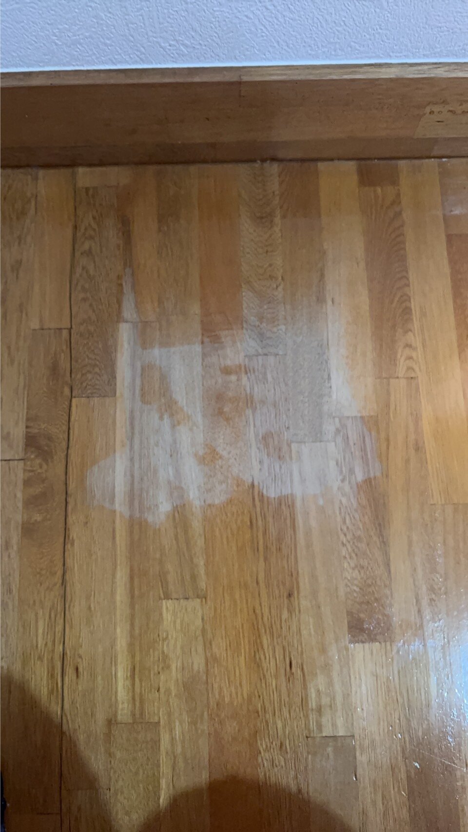 仙台市泉区にて戸建住宅リフォーム後の木部リペア補修を実施しました。おそらく何かの液体がこぼれた跡で階段の踏板部分が白く変色していました。変色前の状態に近づけるよう丁寧に補修いたしました。 -