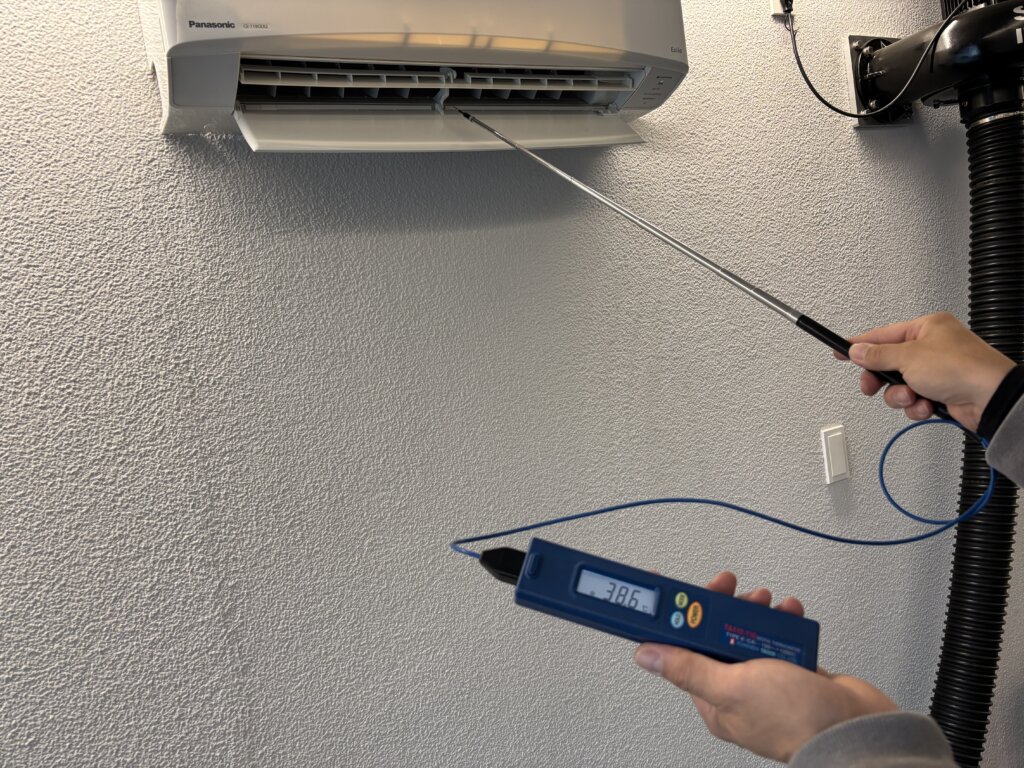 いつも大変お世話になっているお客様からエアコン増設工事のご依頼がありました。今回はガレージへのエアコン設置ということで、200Vの専用回路を増設し、23畳用の壁掛けエアコンを施工しました。設置後に暖房25度設定で試運転。10分程で20帖のガレージ空間が暖かくなりました。真夏の暑い日にも冷房が大活躍しそうです。