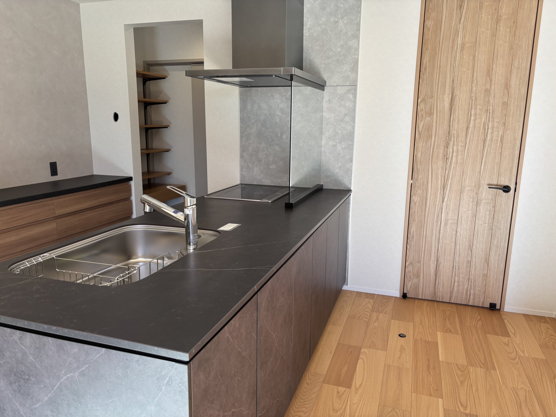 仙台市内にて新築戸建住宅の美装工事を実施しました。重厚感あるキッチンが魅力的でした。これからのアフターメンテナンスを通して、大事に住み継がれていくことを願って精魂込めて美装いたしました。